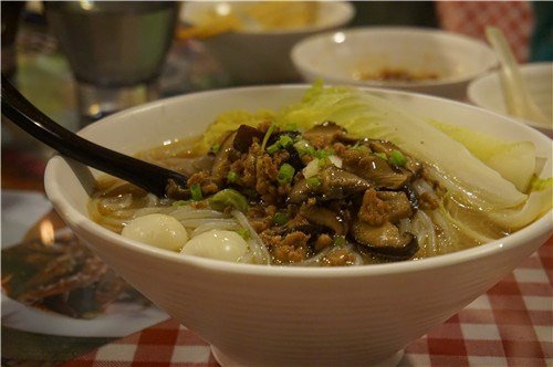 吃的差不多了最后又点了一碗米线,单纯的就是想尝尝,果然没有让人失望,米线够爽滑,里面的肉燥香菇丁非常多,咸香适口。