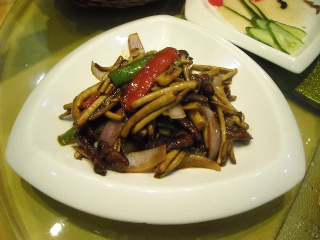 茶树菇牛柳:茶树菇很新鲜,牛柳蛮嫩的 里面还有洋葱 青椒 红椒颜色搭配不错 味道也很入味