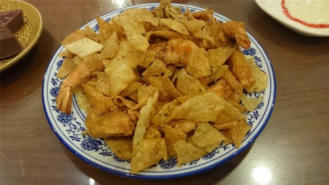 炸虾+炸薄脆碎的组合。炸虾数量还真不少~