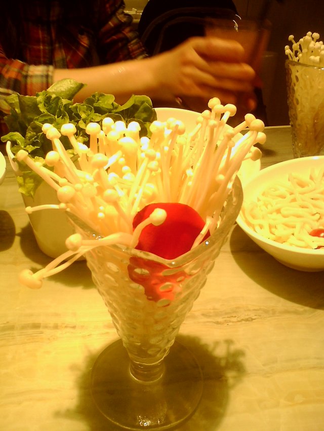 金针菇,菠菜等蔬菜:蔬菜其实一般啦,菜都是一样的,就看新鲜还是不新鲜。这里的菜还是比较新鲜的,不过菜肯定打过农药,一点虫斑都没有,多烫烫吧。。。