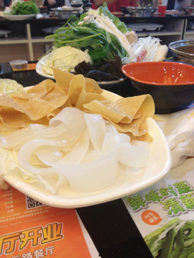 这家呷哺呷哺在大悦城的9楼,很好找的,电梯一上去就能看到。店面布置的很简单,都是围着圈吃饭的台子还蛮有意思的。服务员挺热情的,带位、点单、买单,速度都很快,上菜的速度也很快,无意看到厨房出菜前都是要过秤的,瞬间好感提升。点了比较清淡的清汤锅,我觉得这样比较适合吃他们家的蔬菜拼盘,不会很油,价格也便宜才2元/锅。老公的泡菜锅也不错,适合下肉。点了一份牛肉套餐,牛肉一盘外加1个蔬菜拼盘。不得不推荐他们家的蔬菜拼盘,东西很实在,叶子类的蔬菜3种、还有冬瓜、萝卜、丸子、蟹肉棒和粉丝。个人觉得一个人是吃不下的。和老公2个人另外点了份丸子拼盘、豆皮和粉丝,2个人吃正刚好。他们家的调料也赞一个,3元/人畅吃的,味道还不错。总的来说,作为火锅店,他们家的性价比是很高的,经济实惠。