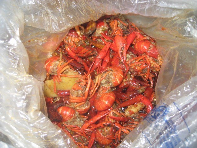 小龙虾没吃过瘾,所以选了小熊湖去打包解馋。地点好找,就是顺城街世贸背后。街边上就有直达电梯,4楼,进去后先看到好多小熊,不象一个吃虾的地方喃。两斤虾,也是好大一堆,不过,这个真是货真价实的,首先虾选的是个头中等的青虾,青虾壳壳薄,不zha 称,所以虾虾的数量就多,虾虾数量多了,肯定肉肉就多了三;并且虾虾是薄壳的,相对也好剥些,而且虾肉非常新鲜,吃起Q弹,还有,虾虾都是去了头的,作料全部炒进去了,所以很入味。他家真是舍得放作料,香料都大块大块地炒到里面,味道麻、辣、香齐全了,连吃虾要过敏的某君也忍不住吃了好几个。不过,美中不足,他家店里面可能通风不是好好,就打包虾虾那短短的十多分钟时间,衣服上就染上了好大的味道,这种味道以吃货的经验肯定作料里面是加了增香剂的。