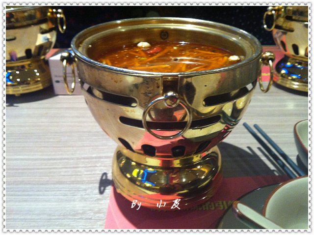 他们家的锅底的锅还挺好看的。金色的很特别。