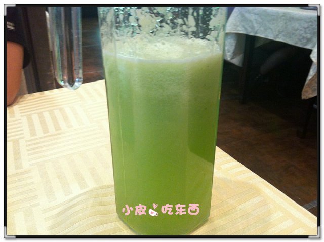 最坑爹的可能就是他们的黄瓜汁了,差到不能再差了。第一,他们家并没有酒水单,我问有没有饮料,他们说有,鲜榨和汽水都有,那么我为了健康就选择了鲜榨的,我要的是黄瓜汁,当然我没有跟他们说不要放糖,喝的时候,黄瓜味没喝出多少,倒全是糖水的味道,感觉就在喝糖水啊,这也就算了,付账的时候才发现原来黄瓜汁那么坑爹,要58元?知道饭店里东西贵,但没想到贵成这样……