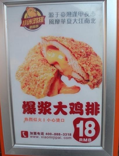 小米鸡排盐酥鸡 woyao9119等級42013-11-297 瀏覽 關注 这家店位于东城区南锣鼓巷南口,地铁南锣鼓巷站附近。 一进南锣鼓巷就能看到,好多人挤在窗口买,挺火爆的。 买了招牌的爆浆鸡排,香辣鸡翅和盐酥香菇。 结果买多了,看着量不是太大,很撑地方,午饭基本不用吃了。 鸡排很大一块,外面裹了酥酥的面糊,鸡肉挺嫩,芝士没像图片上流出来那么夸张,不过给的也够多,吃一块就有点腻了。鸡肉是咸的,芝士微微有点甜,味道不错。 香辣鸡翅表皮酥脆,鸡肉同样挺嫩,不过不算太辣。 香菇挺不错,鲜嫩多汁。以上食評乃用戶個人意見 , 並不代表OpenRice之觀點。讚好分享小米鸡排盐酥鸡 小米鸡排盐酥鸡 https://s.openrice.com/KtbT1m08xy400檢舉 張貼 評分4味道3環境4服務3衛生4抵食