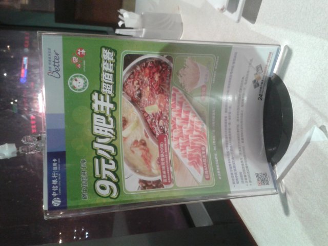 正好那段时间中信银行有活动,9元套餐,包括一个锅底,一份羊肉,一份金针菇,很是划算,只限周三与周六,两个人,再点一份肉与菜足够