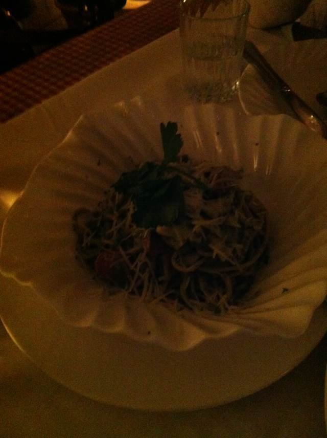 青酱意大利面应该是用蔬菜调配的酱汁,放在意大利面里伴着吃,味道很浓又不腻。