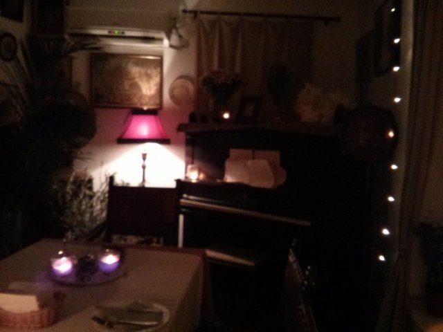 里面的环境非常怀旧,钢琴,落地灯,钢琴上还有放着别人刚刚谈完的琴谱,还有很多艺术的画,在这里放着轻柔的音乐,懒懒散散的,想睡觉啊。