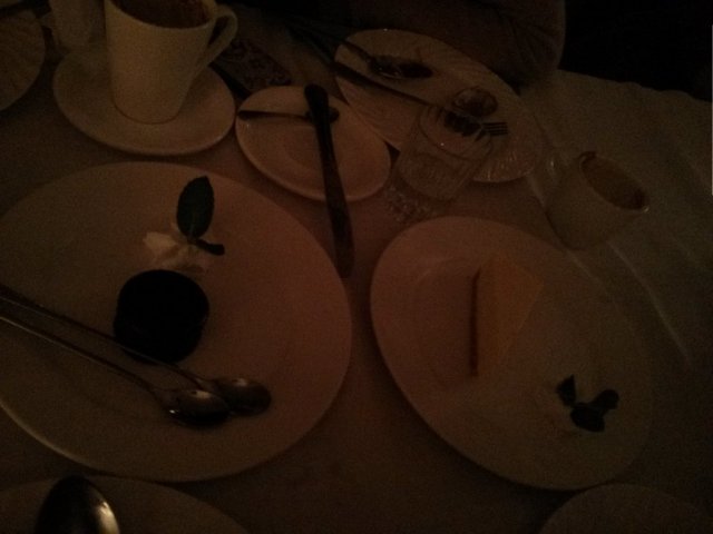 最后是甜点,芝士蛋糕中规中矩,和西餐厅都很像,浓郁又美味,咖啡调配的很香,上面的奶泡很诱人。热巧克力熔岩蛋糕是特色外面的巧克力硬硬的包裹着里面可以流出来的巧克力蛋糕,而且热热的,冬天吃很暖。
