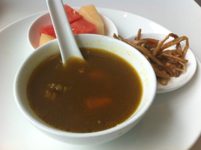 基围虾汤吧 反正是东南亚风格的 基本和冬阴功汤一个味道了 所以我还蛮喜欢的