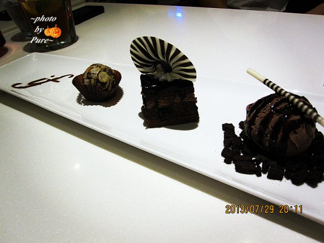 【浓郁巧克力拼盘】甜品中的三部曲:冰激凌+蛋糕+巧克力球。都是巧克力基调的甜品。非常美貌。外貌协会出品的