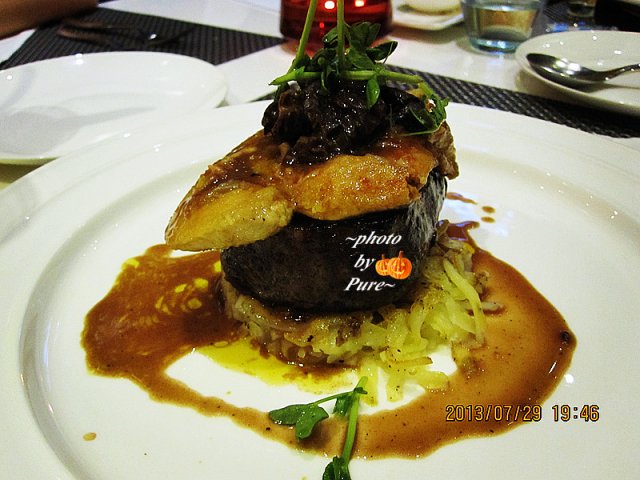 其他的主食是菲力配香煎鹅肝和海鲈鱼。菲力没有机会尝试。不过配的鹅肝还不错。有点肥腻不过我就是喜欢这样肥腻的高热量食物~海鲈鱼说是这里的特色,吃起来鱼很嫩。下面配有土豆泥。应该也能吃饱吧。