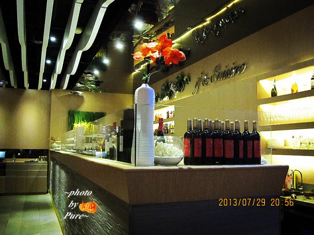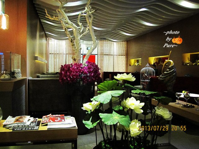 红色的招牌还挺显眼。和红色的建筑风格非常吻合。一进门就是吧台。摆满了各式的鲜花,还有精细的鸟笼。适合来撇情操的情侣们。