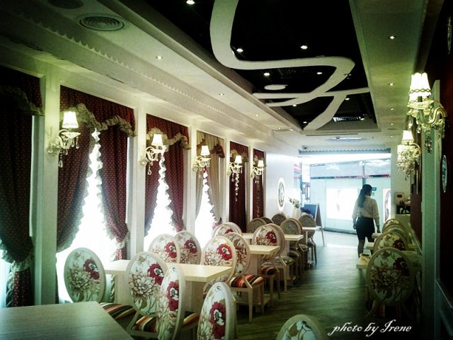 这里的装修很喜欢,宫廷式的窗帘,配着华丽花图案的椅子,加上天花及墙壁的挂灯,营造出了温馨浪漫的气氛。