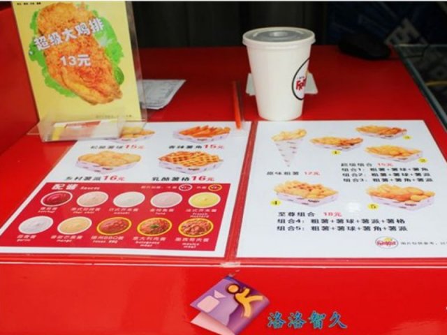 洛验证了密码,登记了下,选择了A组合.粗薯+薯球+薯角,饮料有可乐与雪碧,洛要了前者~