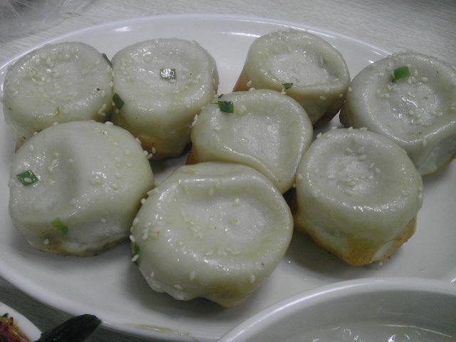 外皮软软的,煎的底脆脆香香的,觉得很赞啊。里面的汤汁丰富,甜甜鲜鲜的,馅料不是小肉团,有点像灌汤包的馅料。好吃挖,就是太热了,对于嘴急的人来说有点无从下口。
