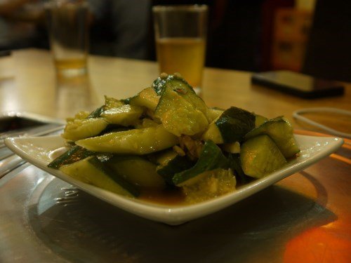 蒜泥黄瓜是一道餐前的开胃小菜,菜量不大,黄瓜很新鲜,吃着清脆爽口。味道很清新,加了些蒜末很提味,咸淡适中,味道不错。