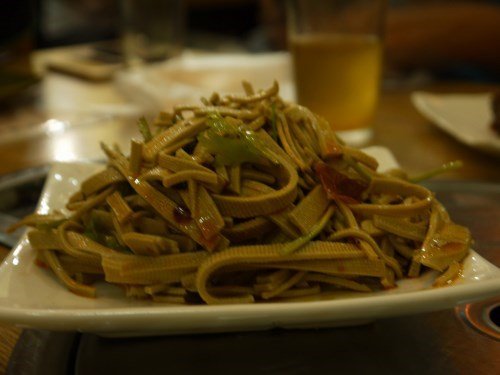 常吃的小凉菜,各家的口味其实都差不多,但这里的辣椒油很香,豆腐丝的豆香味很浓,咸香微辣,挺可口的。