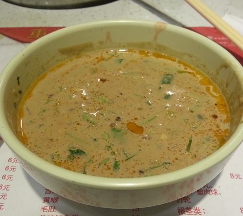 用麻将做底料自己调的小料,有香葱米、芫荽末、腐乳汁、辣椒油·····