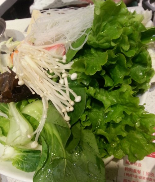 这个蔬菜拼盘跟呷哺的是一样的白菜、生菜、小油菜、金针菇、粉丝······