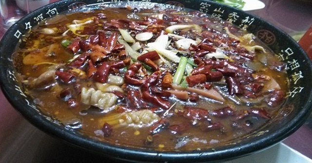 这个菜满满一盆子,里面有血豆腐、午餐肉、金针菇、还有一些海鲜。看着就比较适合重口味的人吃,尝了几口,特别油,味道还可以,微辣,不算咸。