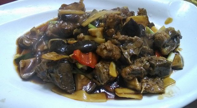 这道菜听着挺好吃的,上来卖相不怎么好,看着不新鲜,估计排骨是提前炖好的,或者干脆整个就是一大锅出来的,哪个点就装一份。个人不喜欢吃笋,香菇也一般,排骨肉也不多,所以对这个菜不满意。