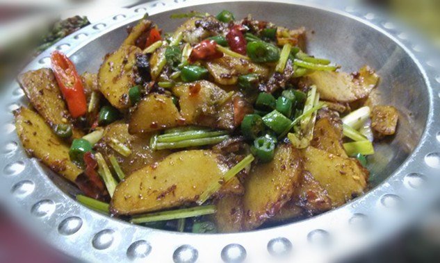 看着满满一份,其实分量并不多,里面有芹菜、辣椒、土豆和洋葱,吃起来挺辣的,特过瘾。最后吃了精光。
