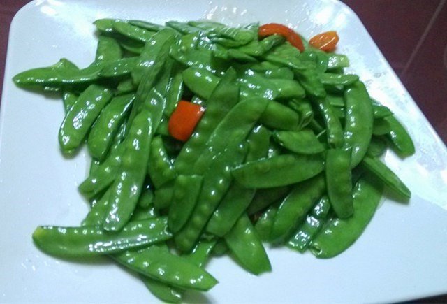 这道菜看着特新鲜水嫩,纯粹的清炒,里面一点儿其他东西都没有。个人不喜欢吃荷兰豆,总感觉味道怪怪的。