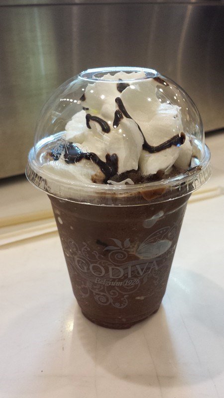 环境:国金的确是个人气很旺的商场,特别是午饭时段~随着新产品的推出,GODIVA的上座率都出奇得高!这家GODIVA除了有巧克力柜台还有蛋糕的柜台,大概有十张左右的桌子,几乎桌桌的客人都拿着软冰淇淋~相对考拉更喜欢环贸的那家,虽然小了一圈,可给人更高档的感觉