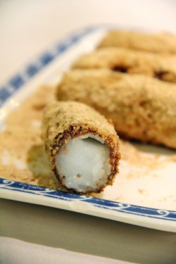 我还是喜爱甜食的 外层酥脆的黑糖裹着黄豆粉 包住软糯香甜的类似于杏仁豆腐的内陷