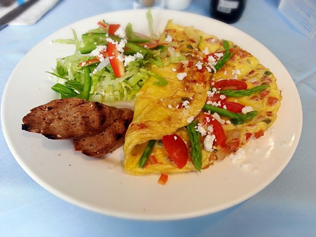 培根鸡蛋饼配芦笋、蔬菜和飞达芝士。鸡蛋饼较嫩滑,芝士太少了,蔬菜没啥味道。