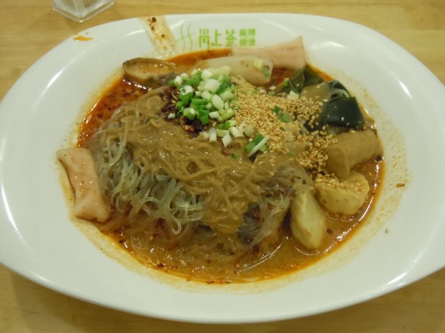 尚上签就位于家乐福大门的左手边,特别容易找到。店的主色调是白色和蓝色,给人海洋的气息和感觉。店内主要以麻辣烫为主,还有其他一些快餐食物,比如担担面之类的。来这吃过两次麻辣烫,感觉味道不错,食材的质量也都很好,对得起这个价位了。麻辣烫的价位主要有三种,一元,两元,三元。基本鱼,肉串都是三元的。两元中也有蔬菜。麻辣烫的拌料分为干料和汤料。干料2元一份,里面的调料自己挑选。汤料是1元的,说是骨汤。我选的是干料,拌着吃很棒。基本晚上5点半后就开始人多起来了,来着吃饭的人很多,估计都是附近小区的住户,所以,这个店还是不错口碑的。下次试试他家的其他快餐食品。到这的公交车很多,比较方便。而且是在家乐福里面,所以可以购物后来着解决晚饭以及中午饭。