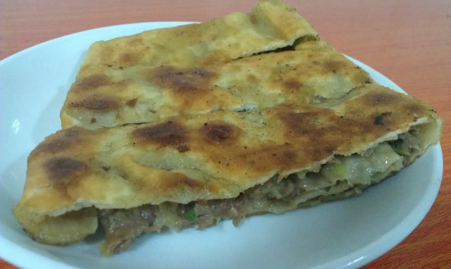 没有想象中的难找,从水游城对面桂顺斋旁边的小胡同进去,一直走就会看到清真大寺,三姑肉饼就在寺庙的边上了,顺着寺庙左边往里走,会看到绿色的招牌,左转就到了。肉饼都是户外制作的,看到有大叔在洗葱,卫生环境比较堪忧。两间小屋和外面的座椅,能容纳不少食客了。肉饼15元一张,素馅4元一张,粥一元一碗,先买牌儿然后自己取饼和粥。现场制作的肉饼外皮非常酥脆,三层皮两层馅儿,比一般的馅儿饼多了一层,可以同时吃到外层酥脆的口感和里面绵软湿润的饼芯儿。牛肉大葱馅儿非常硬可,馅料很多,味道有点重了。肉馅里会有嚼不动的肉筋儿,可能绞肉馅前没剔除干净。缺点是油有点大,看锅里被油浸泡的饼,各种负罪感啊,偶尔来吃点还行。拿饼的阿姨挺有意思,我说来个袋子,阿姨问你半个都吃不了啊,我说够呛,阿姨无奈的说,哎,难怪肉都长我身上了•••哈哈•••