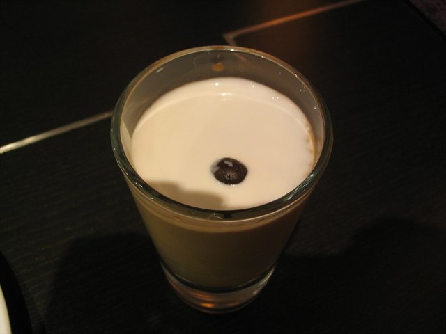 布丁的咖啡味还比较浓,咖啡是加了糖的,口感不错,最上面铺了一层薄薄的奶,奶里没有糖,对比着略带甜味的咖啡,奶就好像微微有点咸了,上面还点缀了半颗咖啡豆,有创意,推荐。