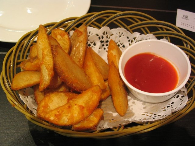 脆炸薯角,纯粹的小吃,薯角外表金黄,边边角角有点脆,里面是面面的,配上番茄酱,不错,但毕竟是油炸的吃食,对于需要减肥的TX还是尽量选择其他的品种。