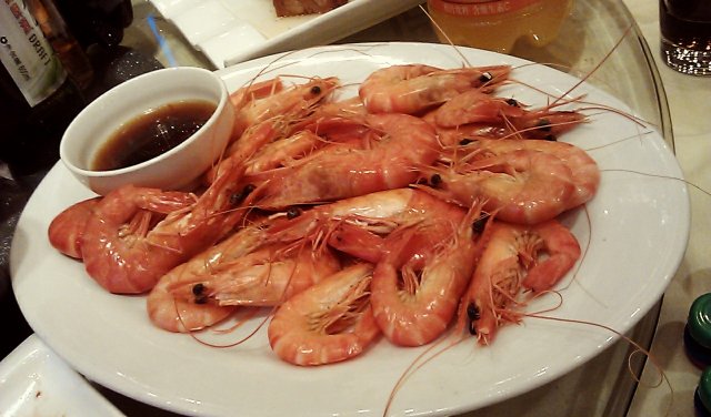 北极大虾~真心大啊~推荐~而且很新鲜,及时不沾酱单吃也很鲜美~