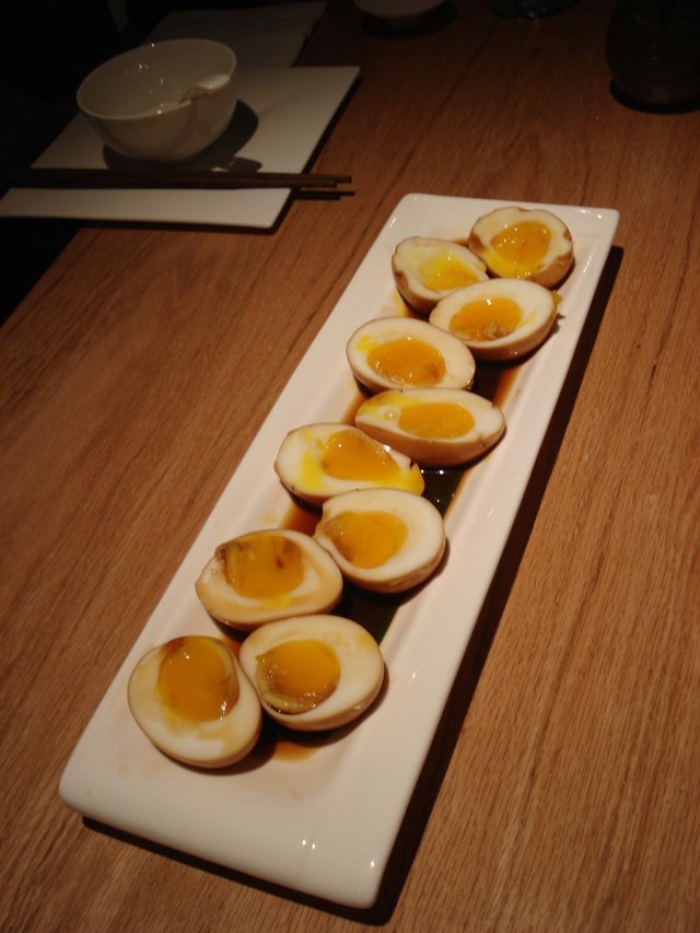 温泉蛋,溏心蛋哦,蛋的着色不是靠酱油,而是靠桂花乌龙哦,胶状的蛋黄,很软滑。