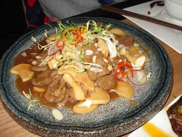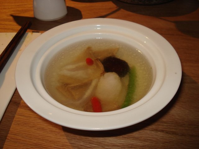 养身鲟鱼龙筋汤,看着这汤名,觉得各种高大上啊,食材主要是鲟龙鱼脊椎内的胶状骨髓,和毛峰、鸡汤一起熬煮,里面还吃到红枣、荔枝,这汤想要不好喝,才难呢。汤汁很鲜美,但是一点都不油腻,很补胶原蛋白哦。