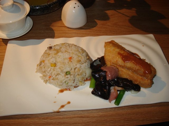 五谷杂粮饭+芦笋鸭胸肉+海鲈鱼,杂粮饭健康的说,海鲈鱼搭配浇在上面的酱汁,咸淡适中,鱼肉段无刺,小孩吃起来也方便哦。