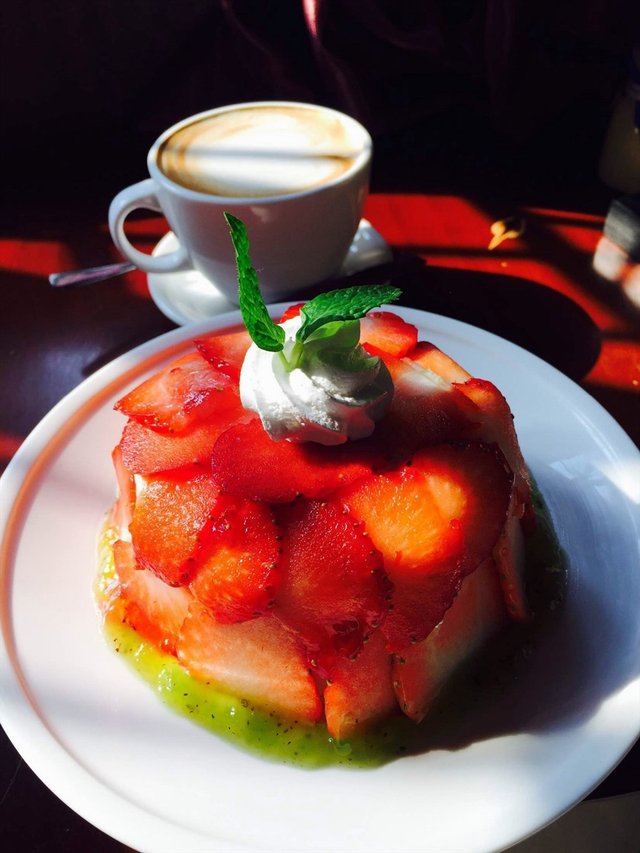 在甜爱路上非常有名的一家小资店,店内的环境很不错,吃的主要是以甜品为主,适合情侣,人均100元左右的价格还是有些小贵的。他们家的女神是招牌,外表非常的可爱,每次看到都有点不舍得吃的冲动。最喜欢上面的草莓,当季的水果,量挺多的,至少满满铺着一层哟,吃到里面的是奶油,第一口特别好吃,感觉很清爽,又鲜又滑,但多了有点受不了,听说也是限量的,卖完就么有了。饮料的话推荐他家的红茶或者伯爵茶。