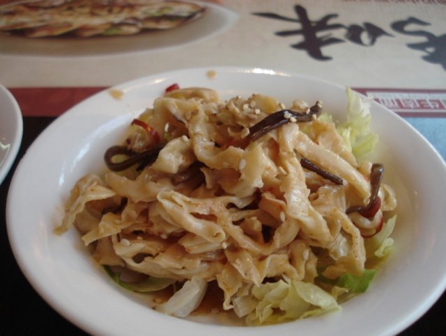 这个忘记叫什么菜了,也是辣辣的,不过下面的生菜还是相当爽口的,而且芝麻的味道点缀的让整个冷菜很爽口的。