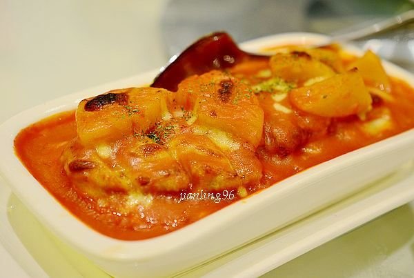 鲜杂果焗猪扒饭酸酸甜甜的,不错,对有些好这口的来说是好吃的不得了,呵呵。