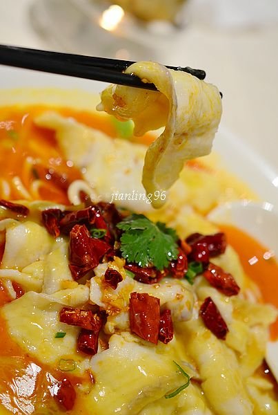 酸菜鲈鱼酸的很可口,鱼片嫩滑、新鲜,蛮好吃的。