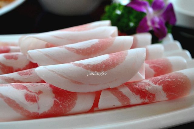 黑豚肉:多漂亮的肉肉哟,看见就口水,别看白花花的,其实吃在嘴里一点都不肥,很香的。