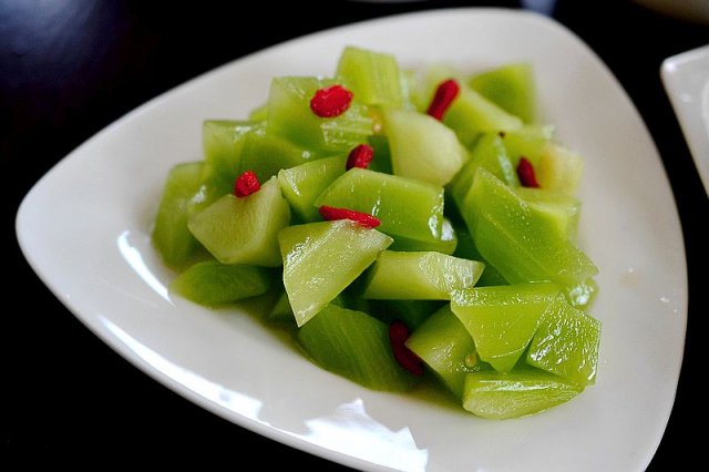 莴笋:碧绿的莴笋配着枸杞的红色点缀看着就舒服, 吃口清香爽脆,