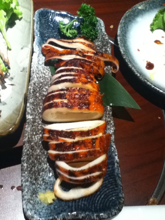 再后面其实已经吃不太下了,不过还有菜啊,炸猪排,这个猪排炸的太老,不好吃,不推荐。多春鱼,一肚子的籽啊,味道不错,最推荐的是烤墨鱼,摆盘非常滴好,烤的也很好吃,有嚼劲,硬度正好,自从上次在一家店里面吃过很硬的烤墨鱼后,其实我对这道菜有点心理阴影的,如果我自己来点,肯定不会点了,不过还好没错过