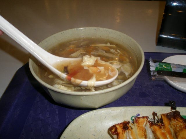 点了招牌的锅贴和酸辣汤,十几块钱吧!
