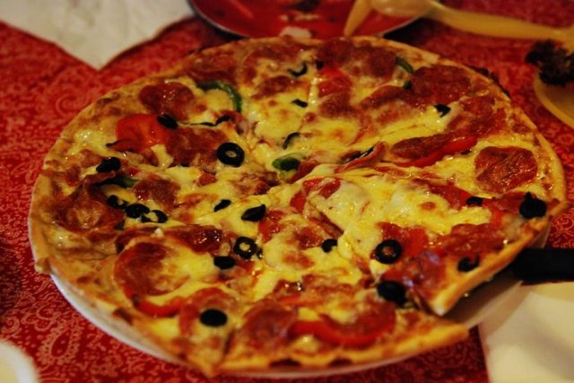 披萨薄却柔软,肉香、芝士香混在一起