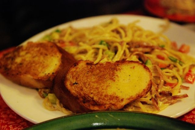 意面配上香脆的面包