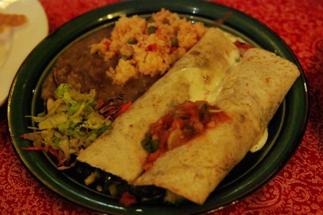 牛肉馅肉卷:一大盘里面放了两张卷饼,一小坨炒饭,一点卷心菜丝,一点红豆泥,这样的组合挺能调和中国南北饮食差异,并且量实在是太大了,这一份得够俩人吃的。
